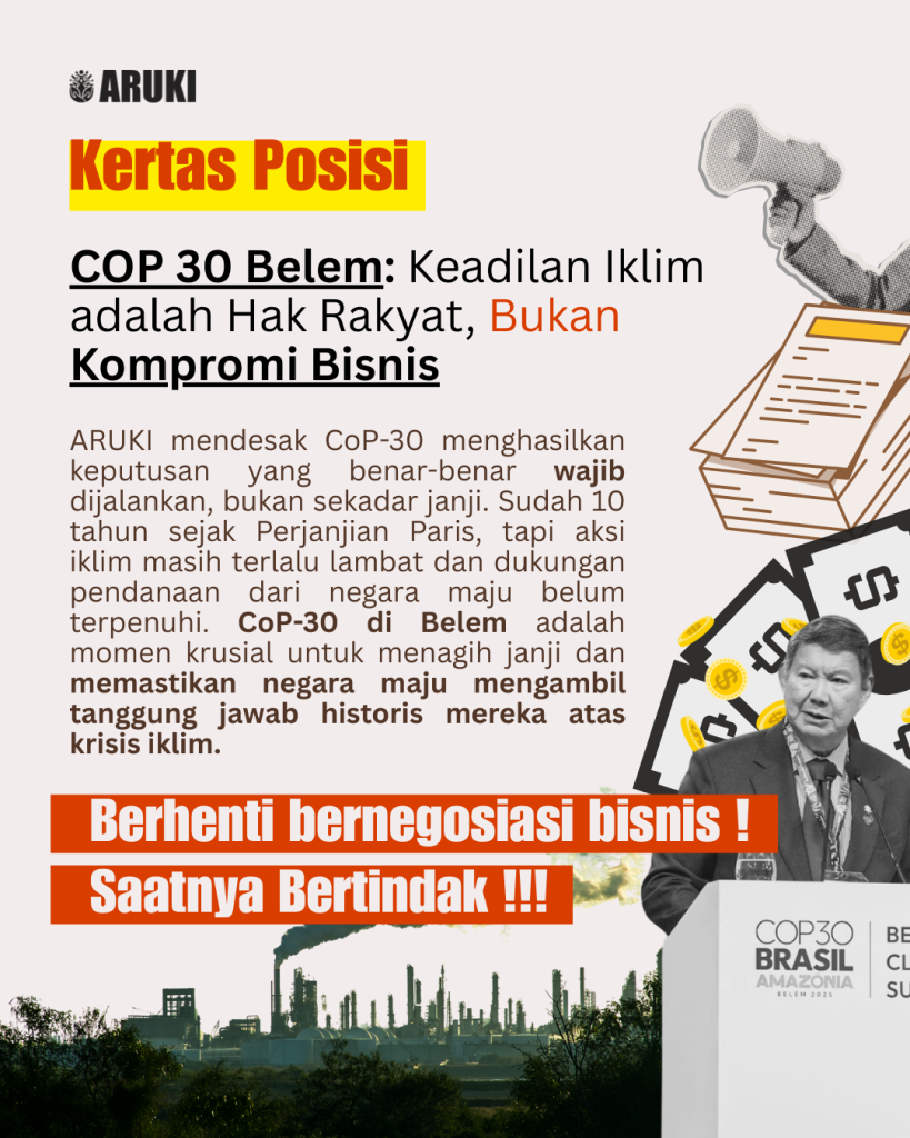 Kertas Posisi Aliansi Rakyat untuk Keadilan IklimCOP 30 Belem: Keadilan Iklim adalah Hak Rakyat, Bukan Kompromi Bisnis